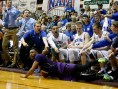 The bench looks for an out of bounds call on Saturday during the third round of the NAIA Division II National Championship Tournament in the Keeter Gymnasium on the campus of the College of the Ozarks in Point Lookout, Mo. (Matt Gade/Republic)