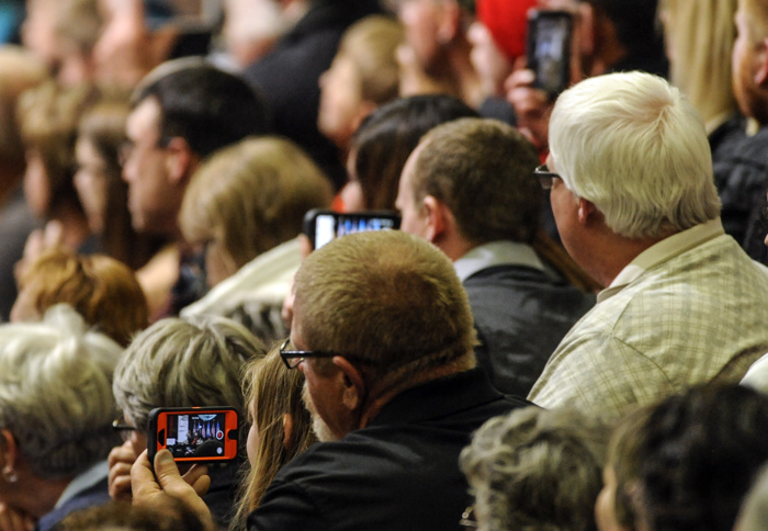 The audience take video on their cell phones as President Barack Obama gives the Commencement Address during commencement exercises for Lake Area Technical Institute on Friday afternoon in Watertown. (Matt Gade/Republic)