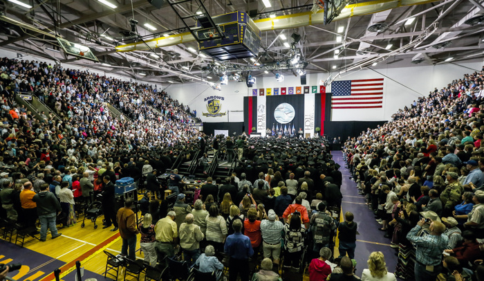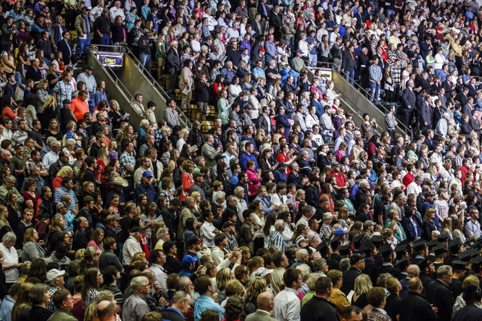 The crowd stands as graduates make take part in the processional as President Barack Obama would later give the Commencement Address during commencement exercises for Lake Area Technical Institute on Friday afternoon in Watertown. (Matt Gade/Republic)